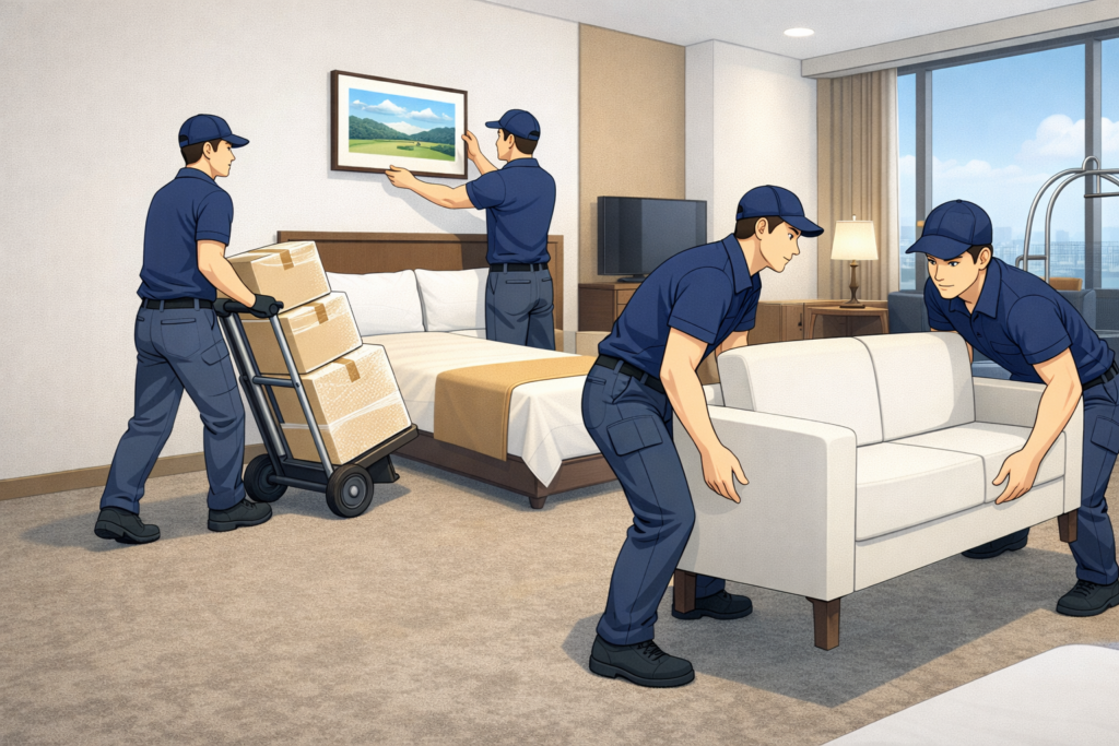 ホテル・倉庫・事務所などへの家具什器の搬入・搬出・設置